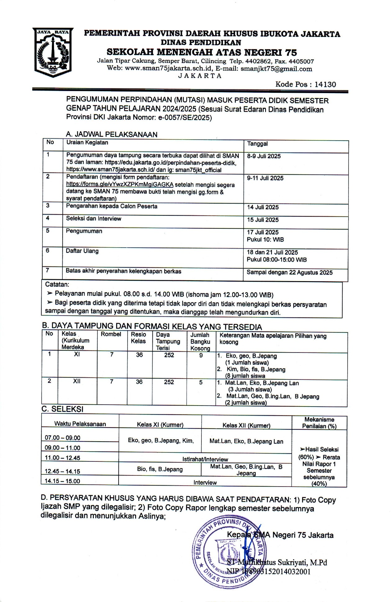 JAKARTA – Sekolah Menengah Atas Negeri (SMAN) 75 Jakarta mengadakan pertemuan[…]