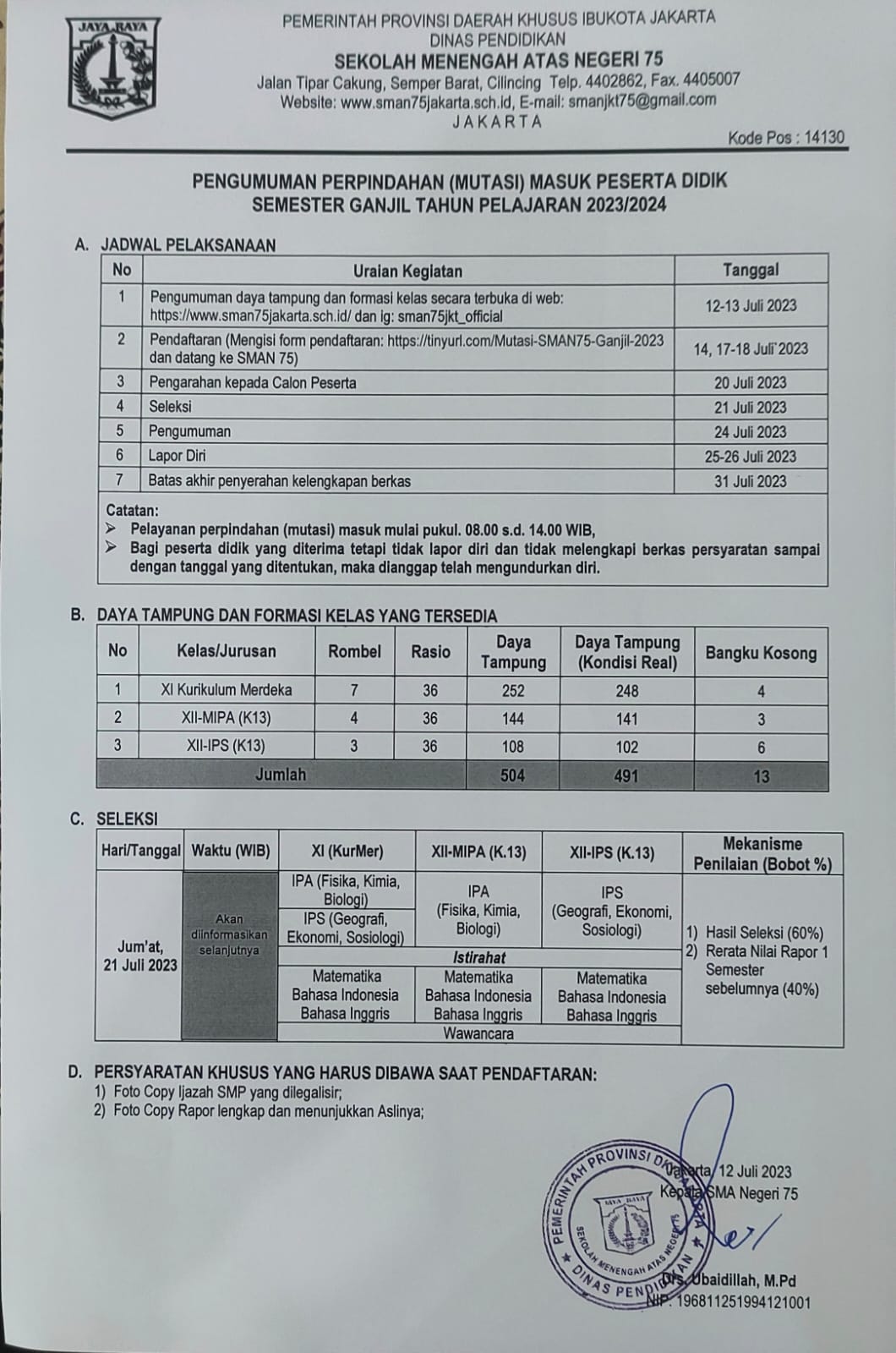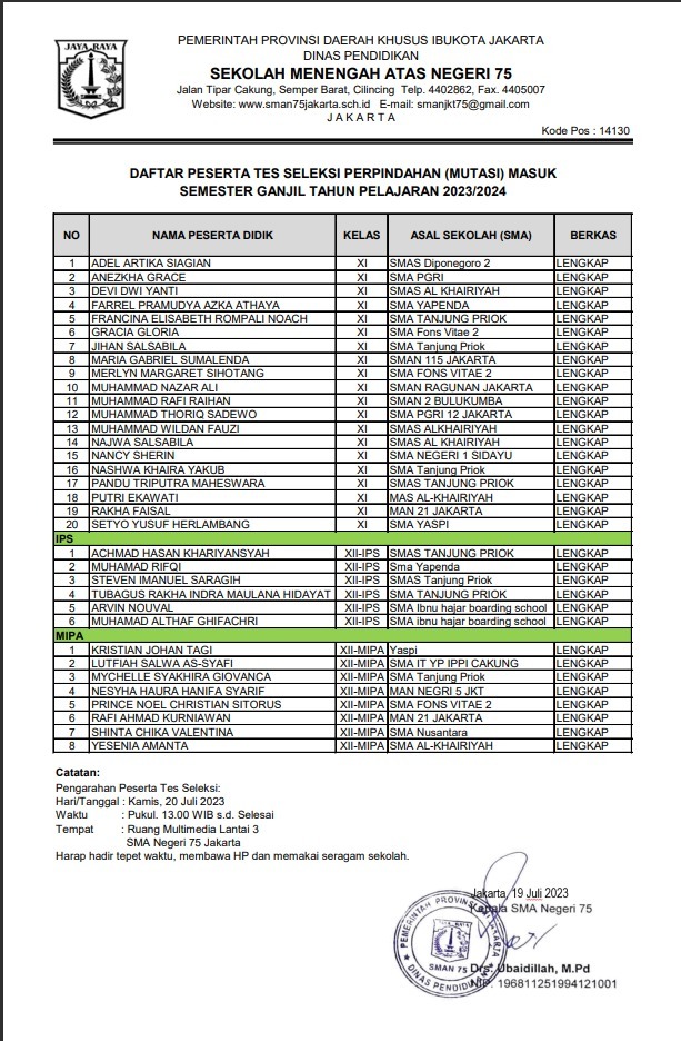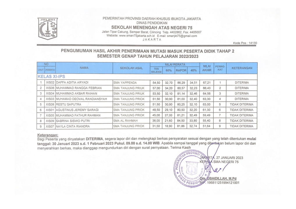 PENGUMUMAN HASIL SELEKSI MUTASI SEMESTER GENAP TAHUN PELAJARAN 2022/2023 Selamat kepada[…]