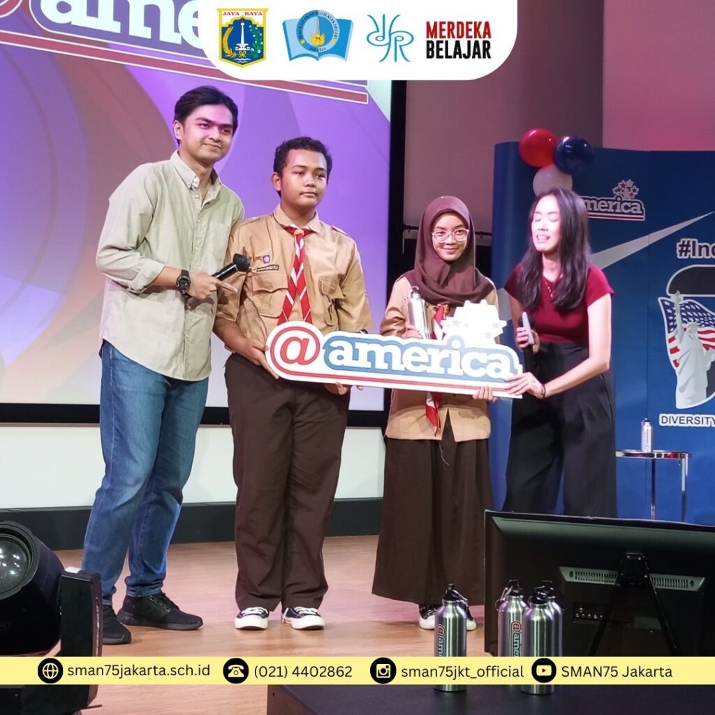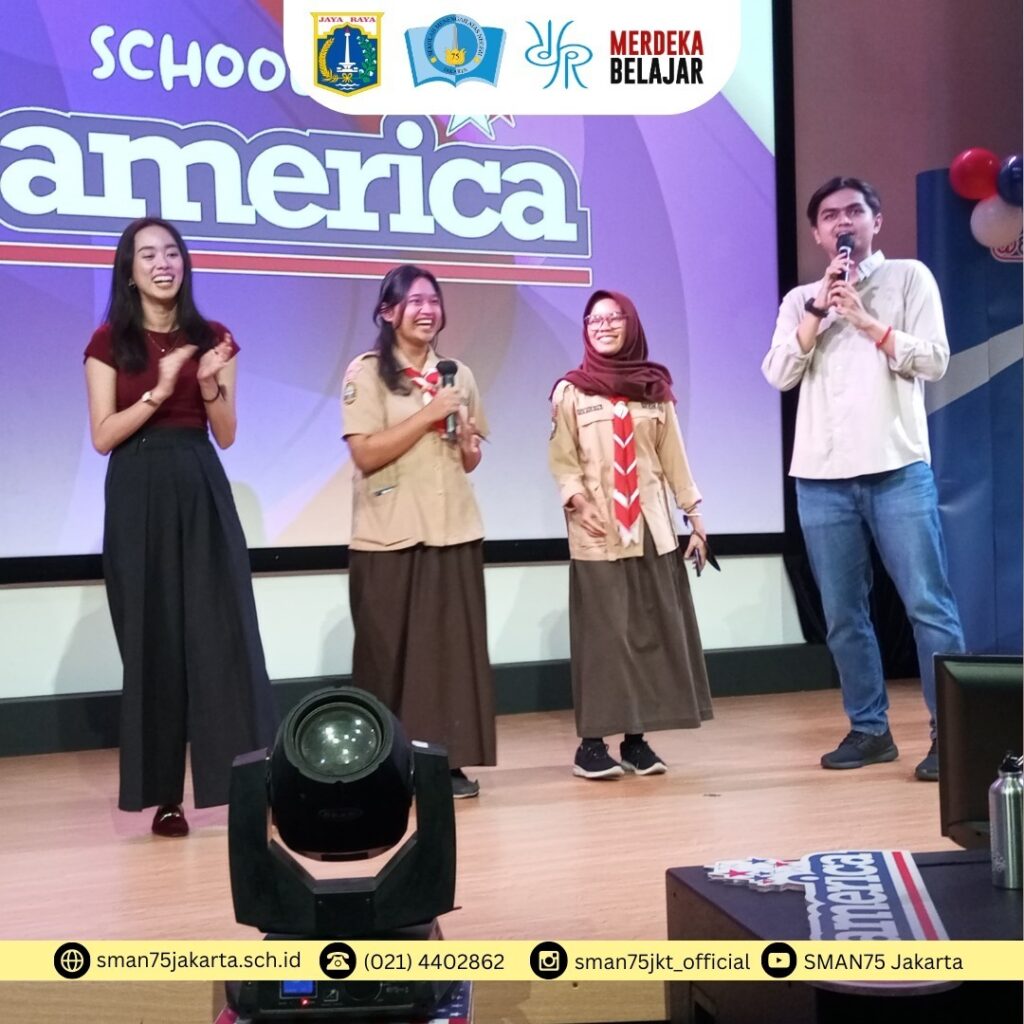 Perwakilan SMAN 75 Jakarta melakukan kunjungan dan diskusi berjudul Schools@america yang dilaksanakan secara offline dengan tema General Americana by US Embassy Jakarta.