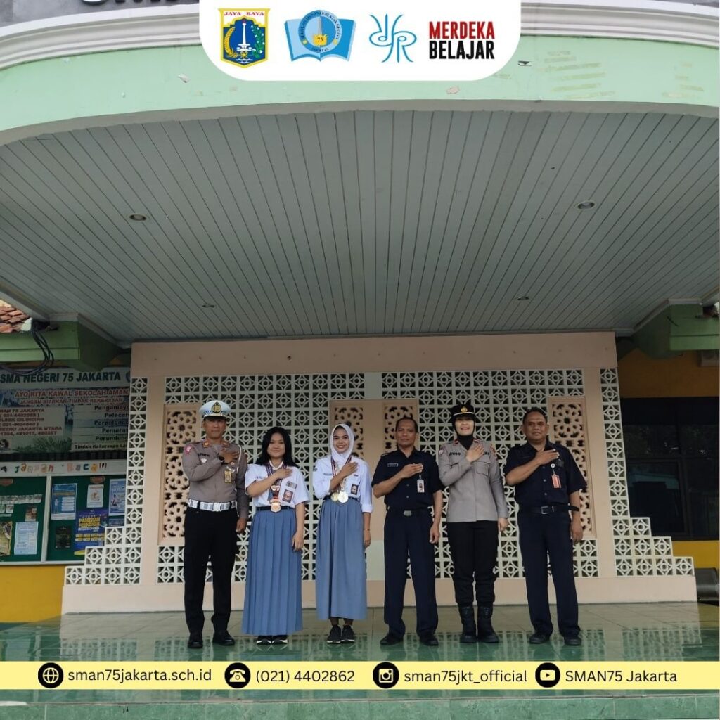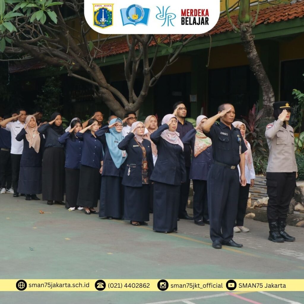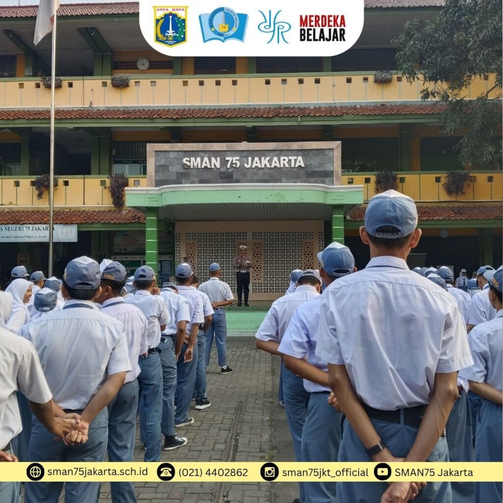 Hari Senin, 29 Juli 2024 Upacara bendera di SMAN 75 Jakarta terlihat sedikit berbeda karena kali ini yang menjadi inspektur upacaranya dari pihak Kepolisian. Dalam upacara tersebut, Dit Kamsel Polda Metro Jaya, AKP Supriatno, tampil sebagai inspektur upacara sekaligus menyampaikan pesan dan arahan dari Dirlantas Polda Metro Jaya, Kombes Pol Latif Usman.